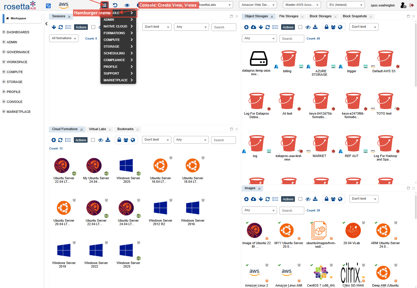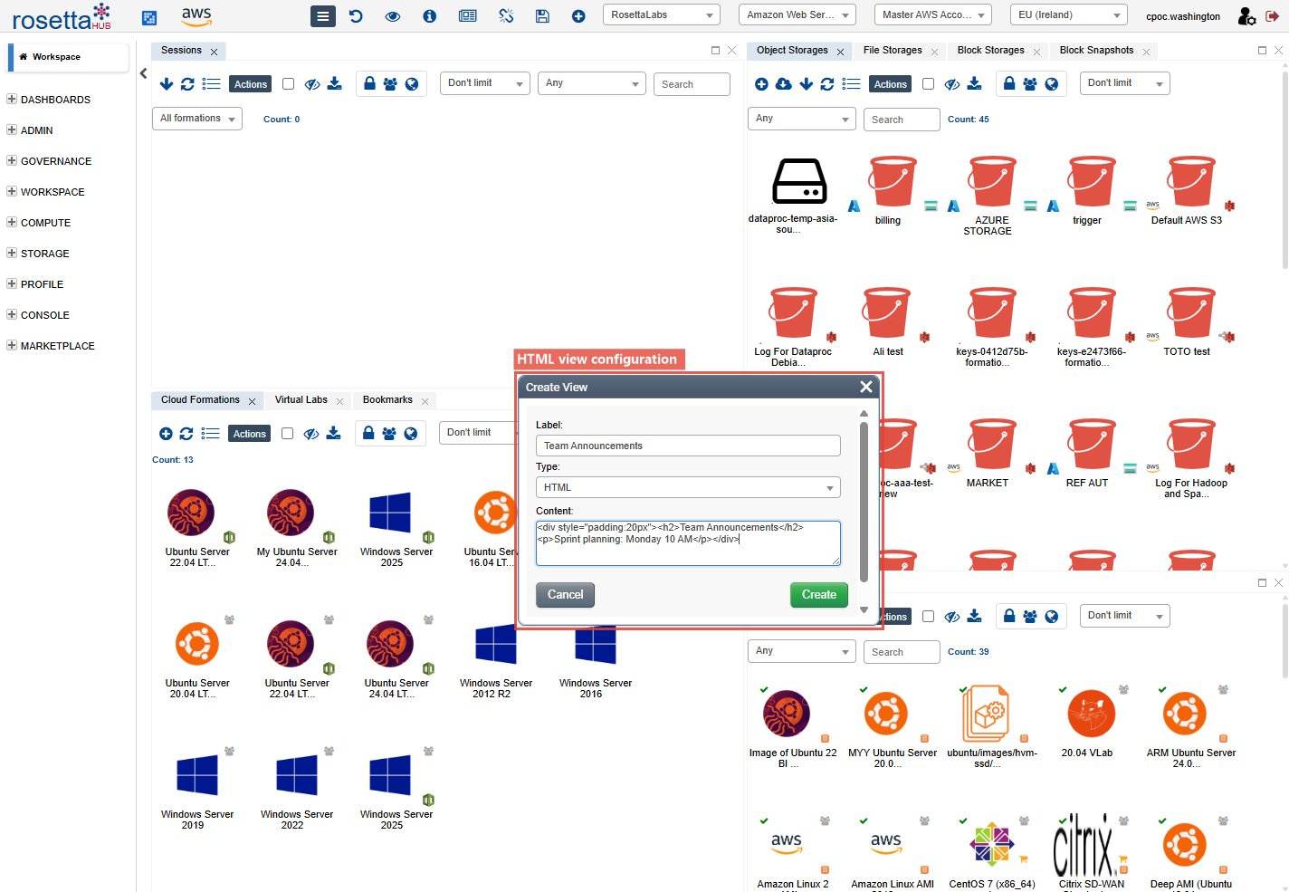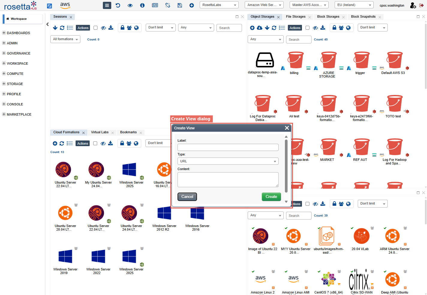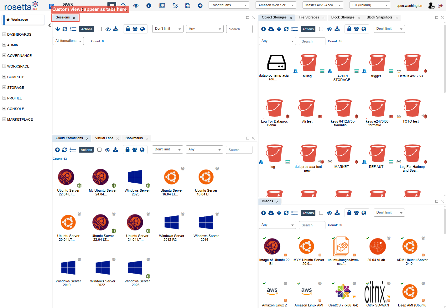 Custom views let you add external content to your dashboard. Embed monitoring tools, documentation, or any web content directly in the RosettaHub Federated Dashboard alongside your RosettaCloud and RosettaBox views.