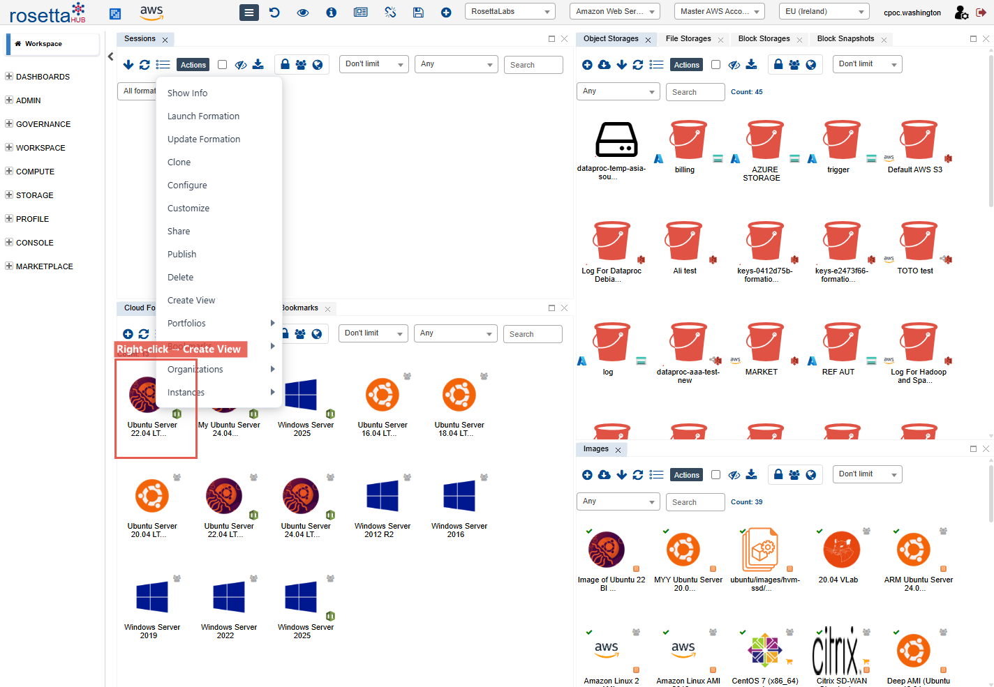 - Right-click any artifact (a formation, image, cloud account, etc.)