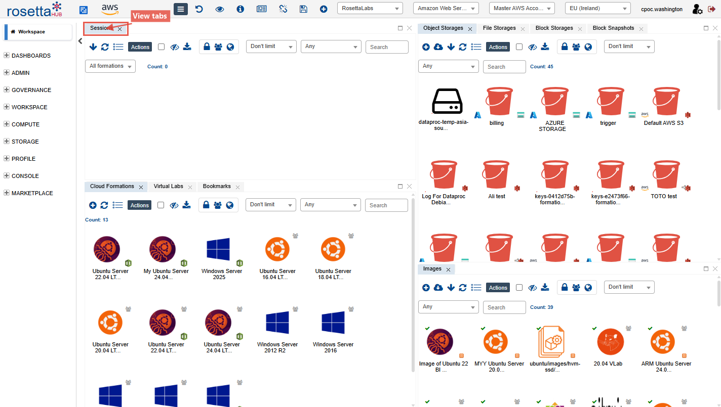 This tutorial walks you through your first login and introduces the perspectives available in the RosettaHub Federated Dashboard. Each perspective is a pre-built workspace tailored to a specific workflow -- from day-to-day research computing to FinOps cost analytics and compliance monitoring.